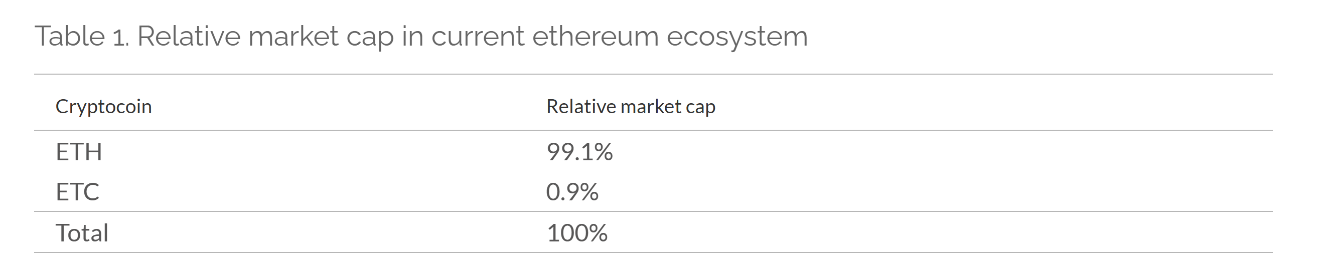 Table 1.Relative market cap in current ethereum ecosystem