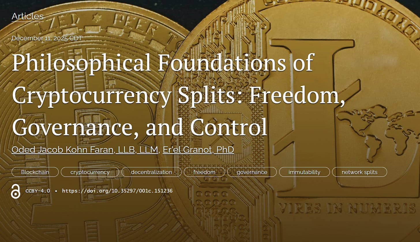 Third, and perhaps most importantly, some of these conflicts were not about quantitative trade-offs (e.g., more versus less transparency, as seen in BSV’s split from BCH). Instead, they involved a choice between two foundational principles that, under normal circumstances, libertarians would consider nonnegotiable. The ethereum–ETC conflict is a prime example: the community was forced to choose between the absolute immutability of a contract and the imperative to protect private property. The fact that a community was compelled to make a choice between these two pillars of freedom is a phenomenon that warrants deeper philosophical analysis.